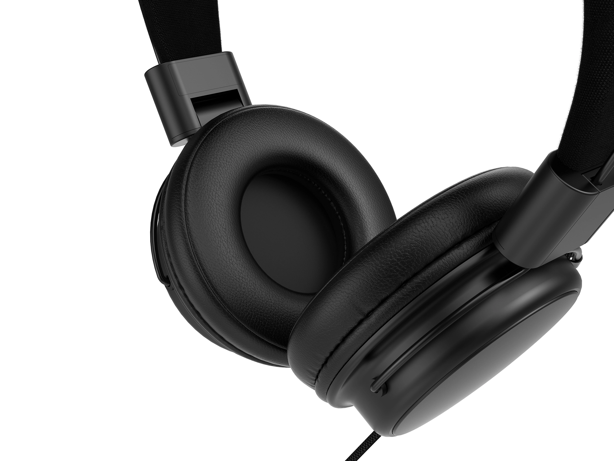 Headsetet har en bekväm, justerbar passform, inbyggd mikrofon på kabeln och en ljudspärr på 93 dB för att skydda elevernas hörsel.